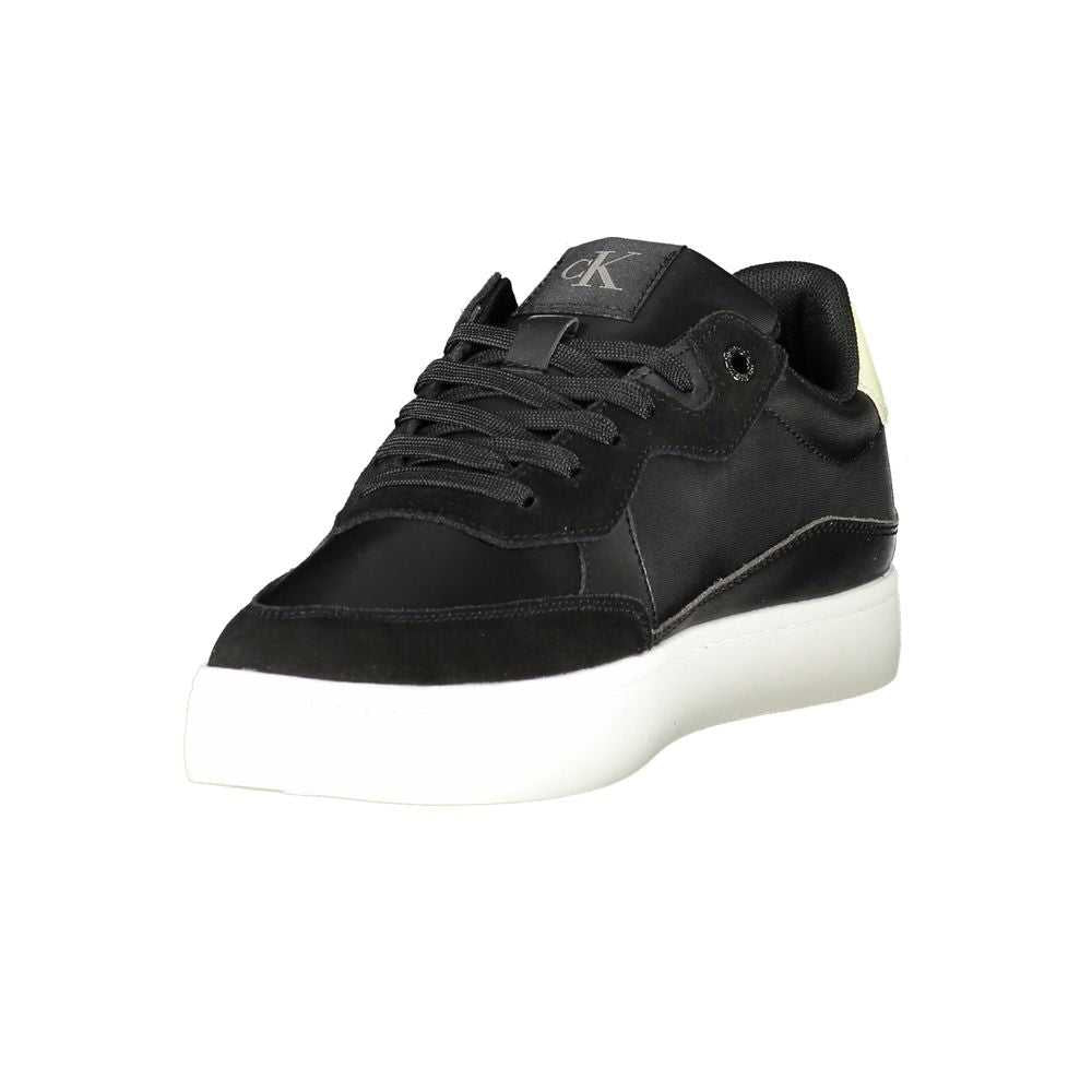 Elevate your sneaker game with the sleek sophistication of Calvin Klein. These sports shoes radiate a bold charisma with their contrasting details and iconic logo print, ensuring you stride with confidence. Crafted for the modern man, they come with a convenient removable footbed for personalized comfort. Make a statement as you step out in these versatile black sneakers, where style meets practicality.