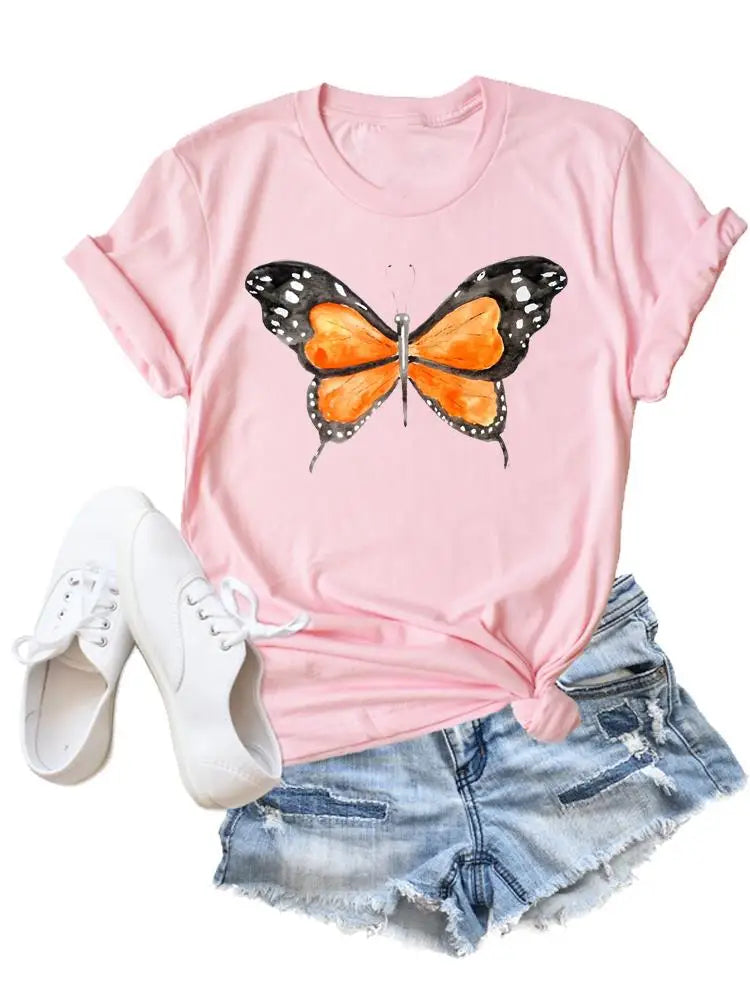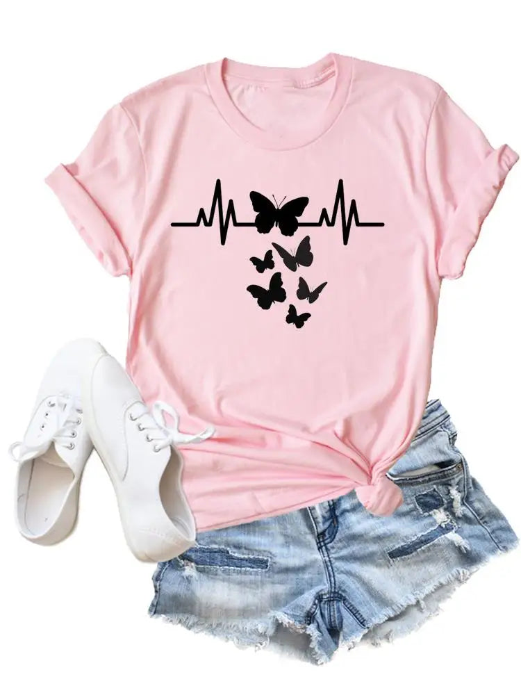 🌸 Embrace Nature's Beauty with our Trendy Flower Butterfly Summer T-Shirt! This eye-catching tee features a vibrant butterfly print beautifully adorned with delicate flowers, making it the perfect fit for your summer wardrobe.