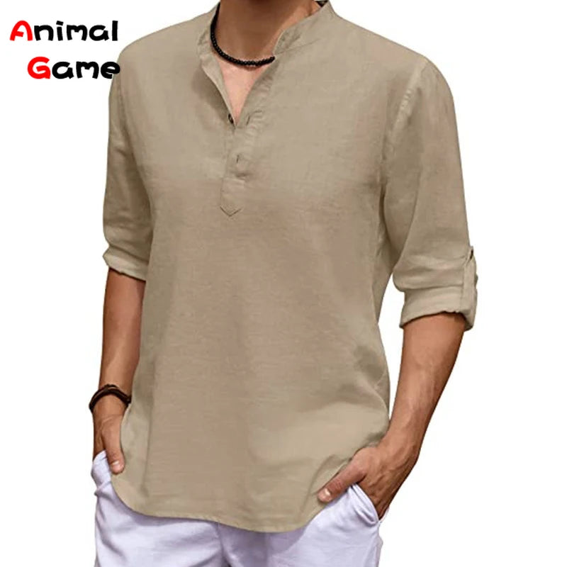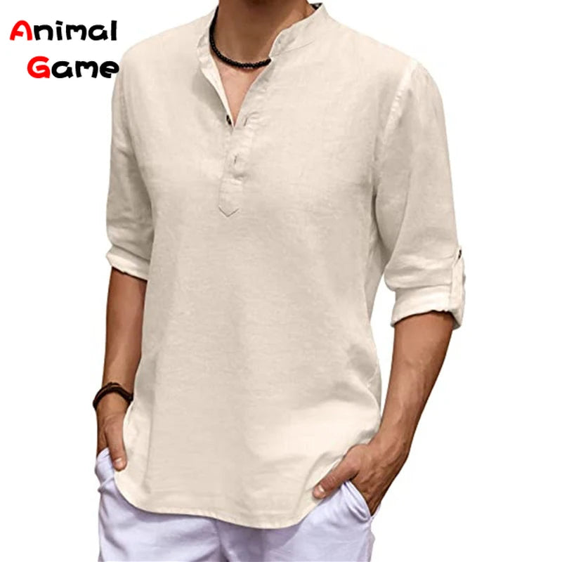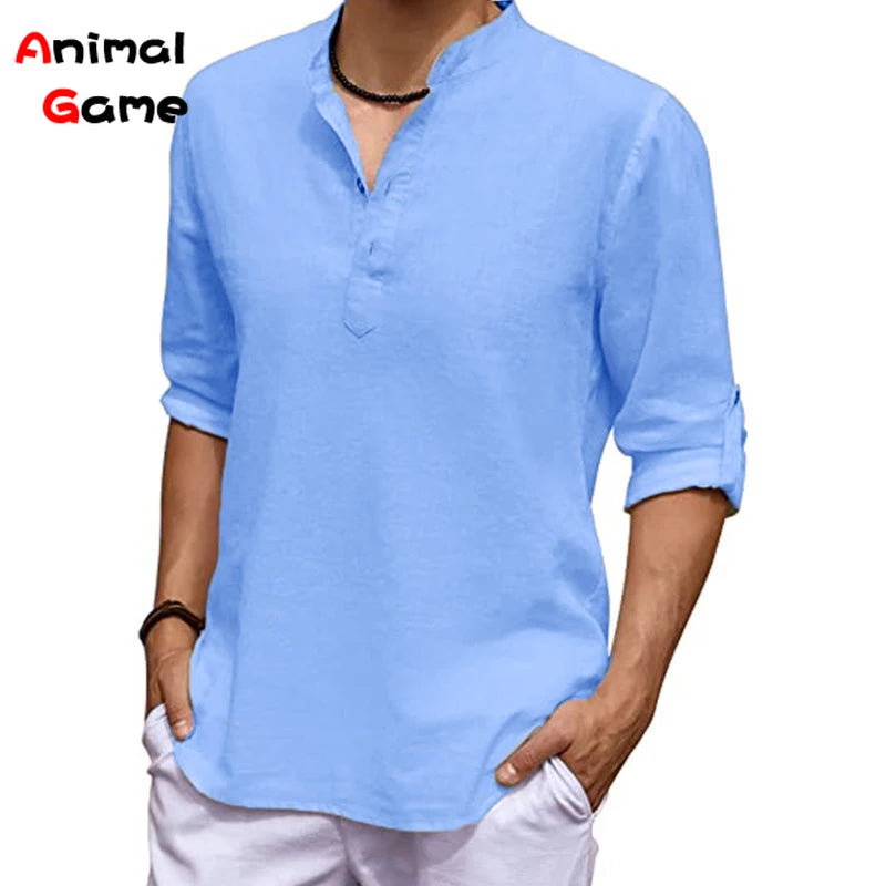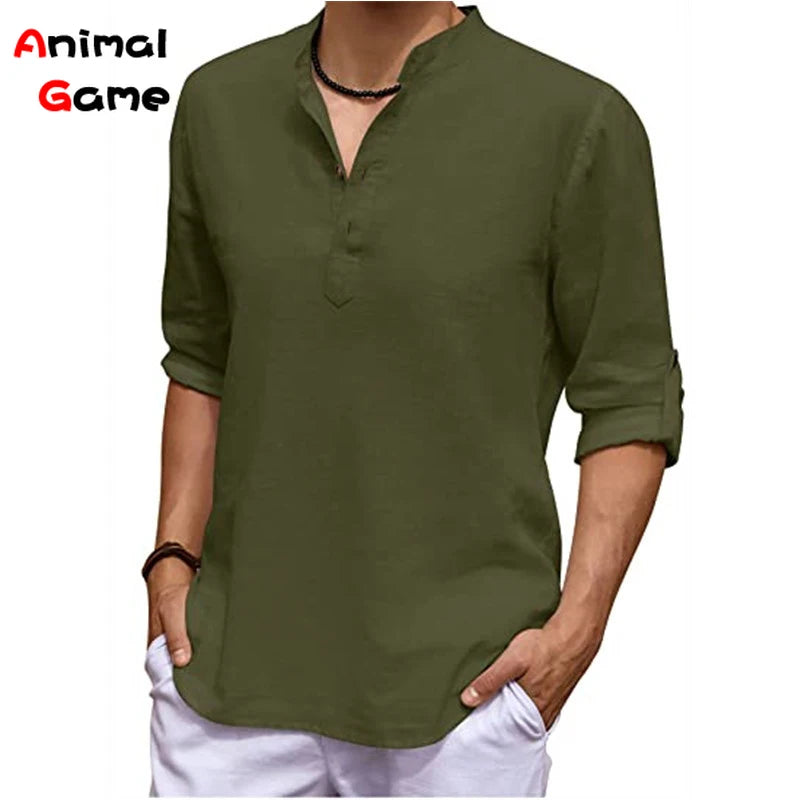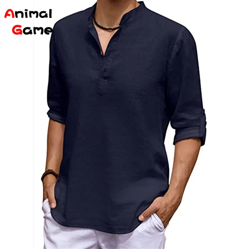 Men's Linen V-Neck Long Sleeve Casual Shirt