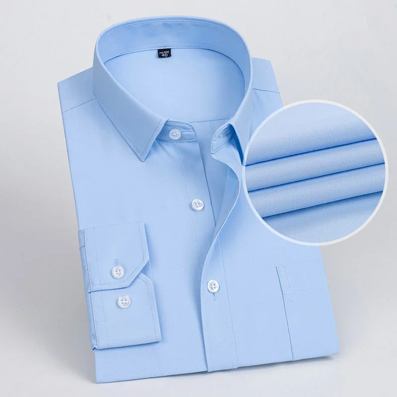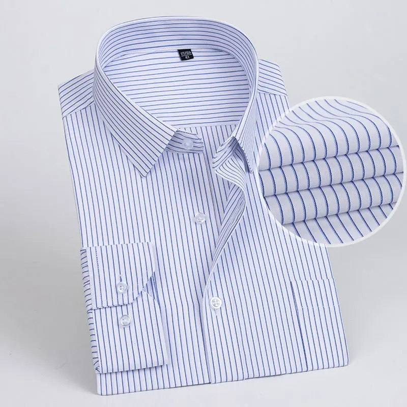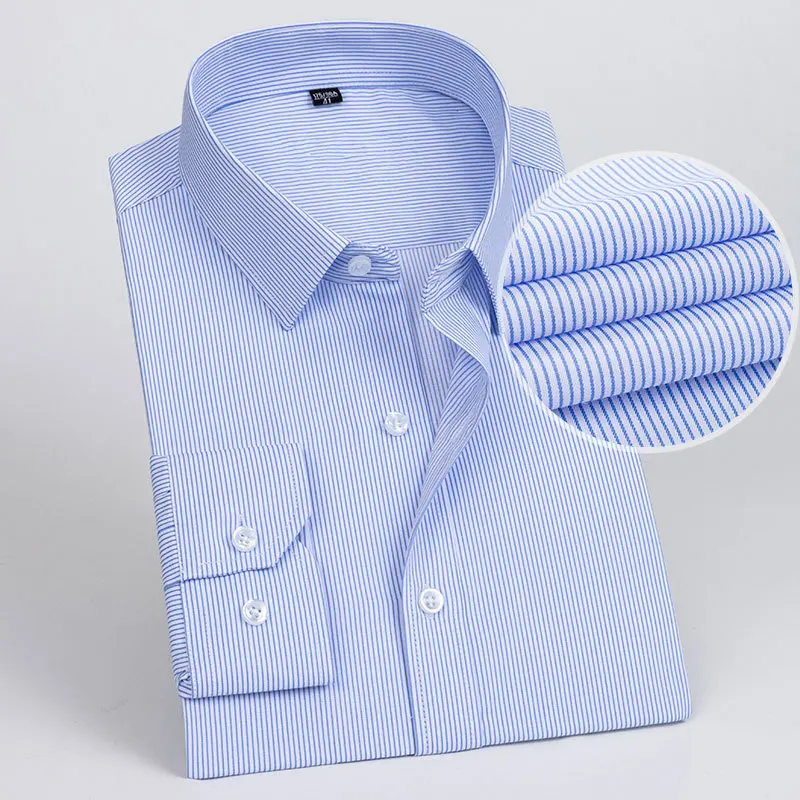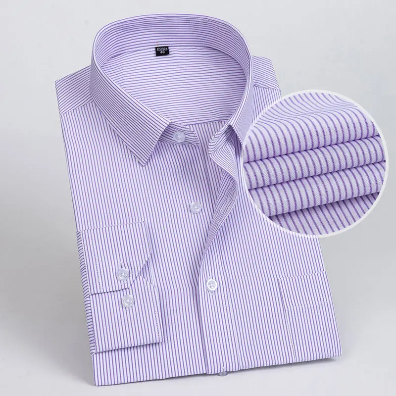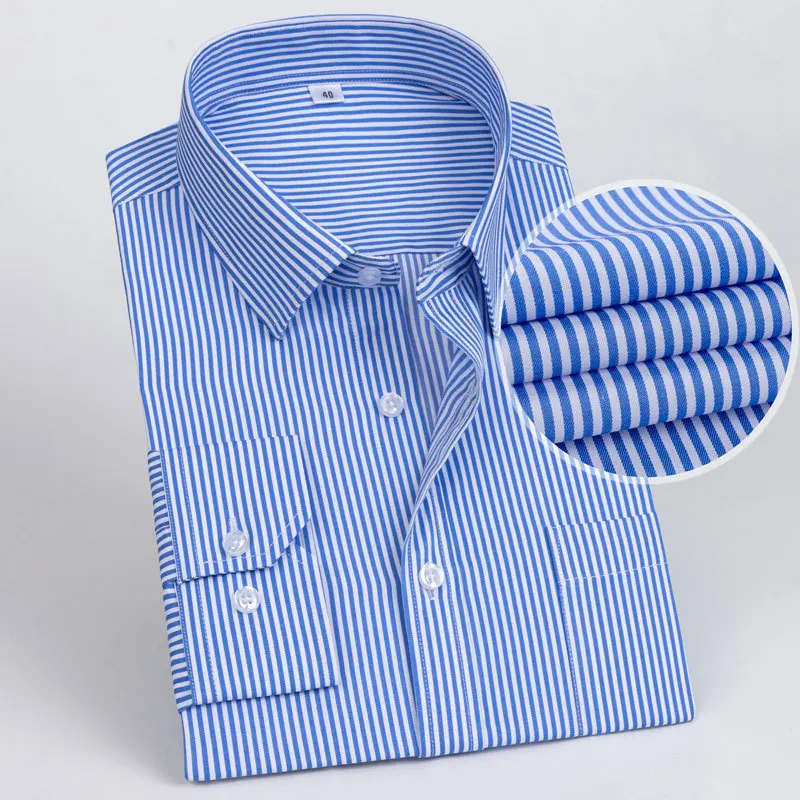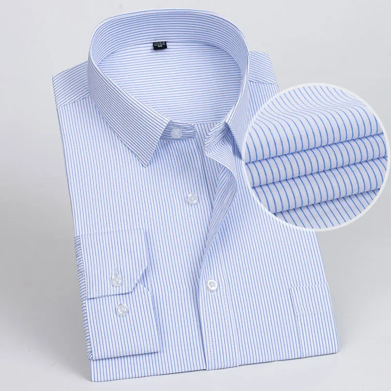 👔 What is it - This Men's Slim Fit Formal Shirt offers a sophisticated long sleeve design in both solid colors and stripes. Crafted for the modern businessman, it features a convenient pocket and an anti-wrinkle fabric that keeps you looking sharp all day. Available in extended sizes 6XL and 7XL, ensuring a stylish fit for every physique.