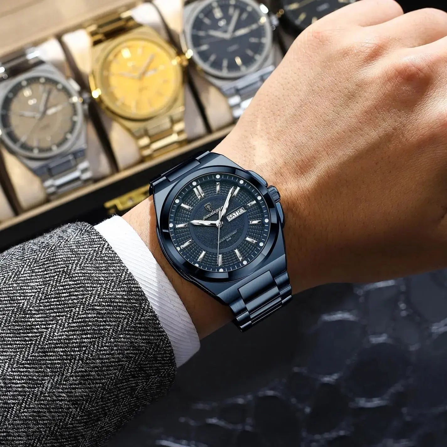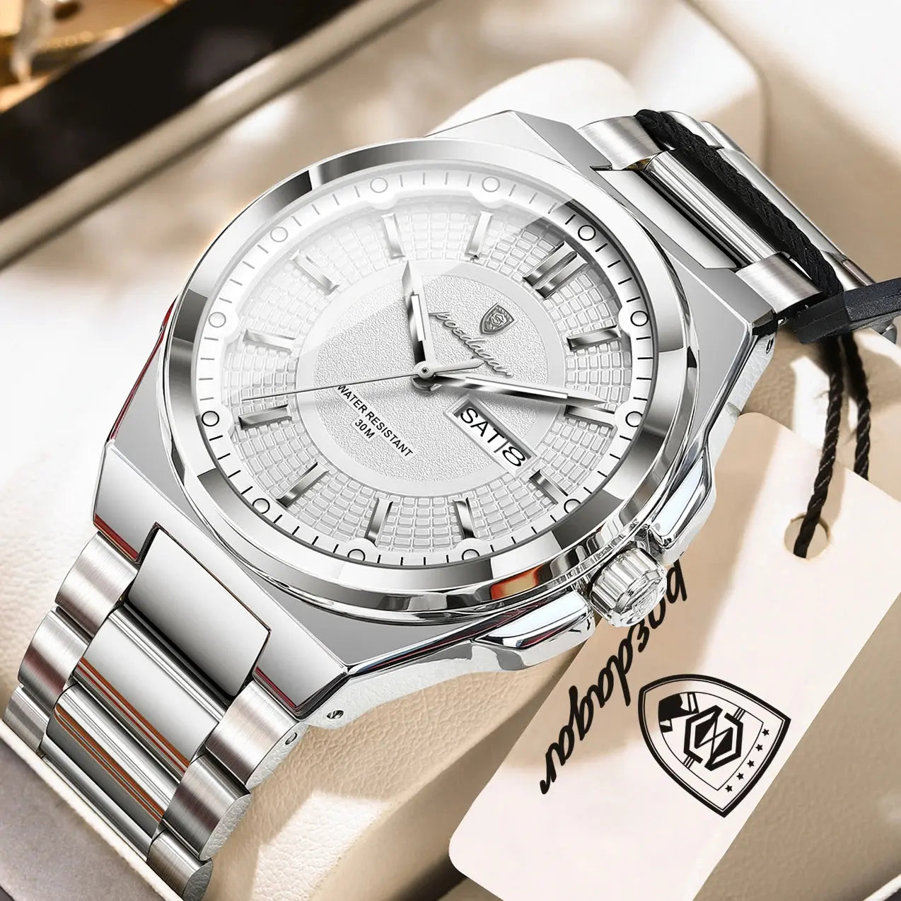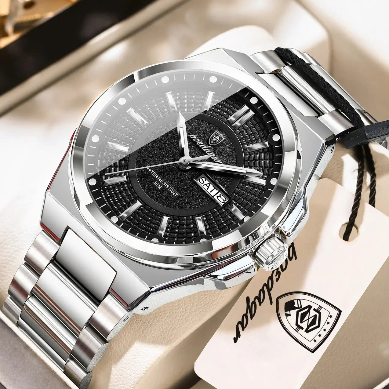 POEDAGAR Top Business Men Wristwatch Stainless Steel Waterproof Luminous Casual Man Watch Date Week Stylish Men&