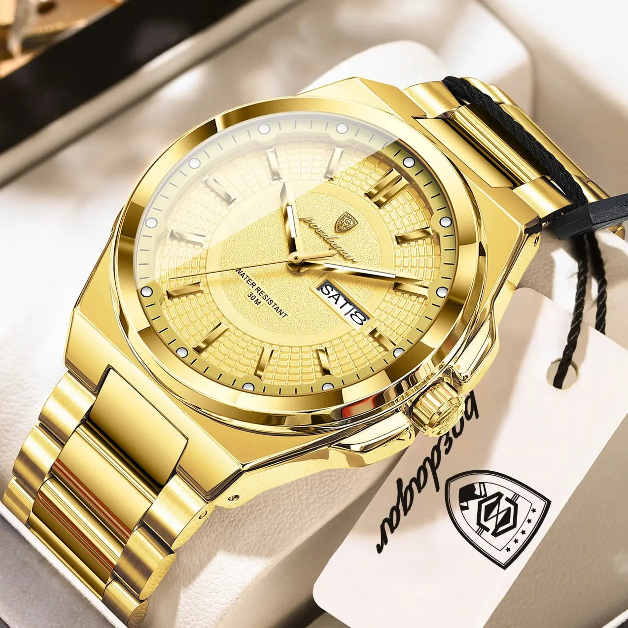 The POEDAGAR Model 896 is a refined timepiece engineered for the discerning gentleman. Crafted from premium stainless steel, this 40-44mm round watch combines durability with understated elegance. The quartz movement ensures reliable timekeeping, while luminous hands and dial enhance visibility in low-light conditions. Features include automatic date and week display, water resistance to 3 bar for everyday wear, and a push-button hidden clasp for a seamless aesthetic. The hardlex crystal protects the numberless dial, maintaining a clean, sophisticated look. Includes adjustable band, protective case, cleaning cloth, and adjustment tool. A versatile companion for business and casual occasions.