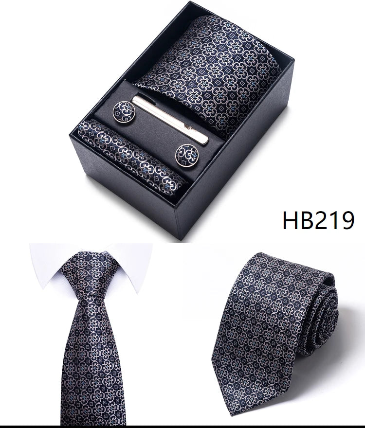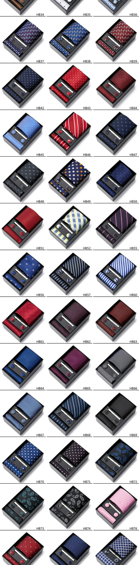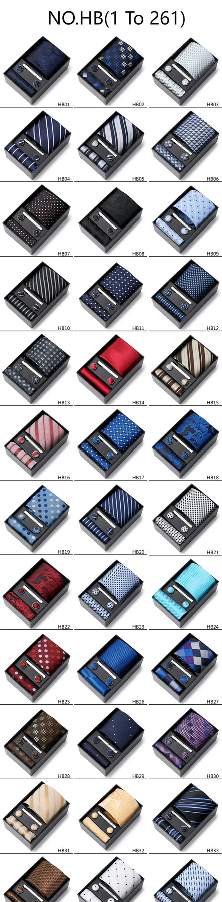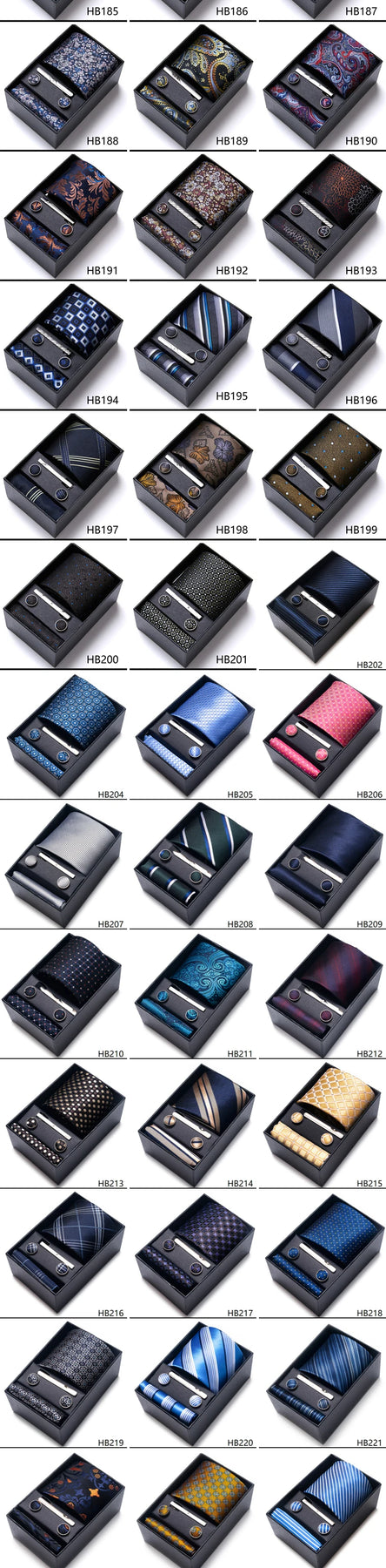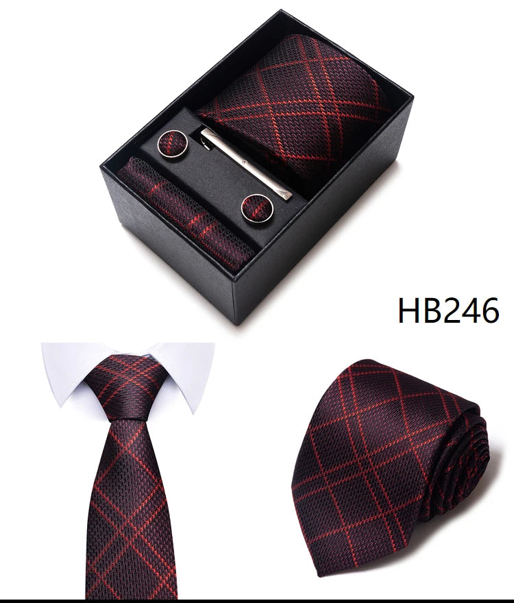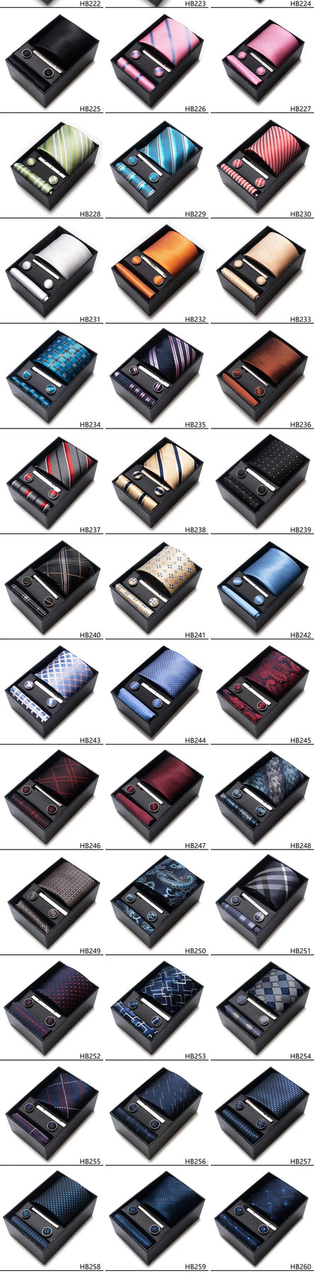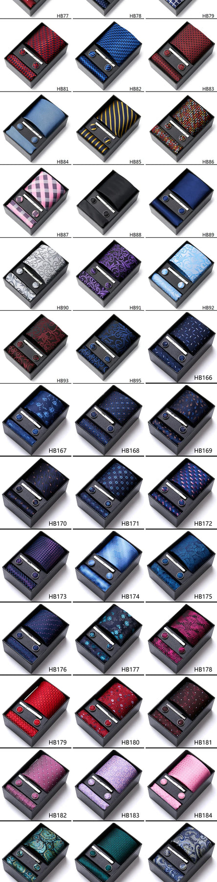 Elevate your formal wardrobe with this sophisticated silk tie set from VanGise. Crafted from 100% jacquard-woven silk, this Italian-designed collection includes a classic neck tie, matching handkerchief, and two polished cufflinks—everything you need for weddings, business events, or special occasions. The tie measures 145cm in length with an 8cm width, offering a refined silhouette that complements any suit. Available in versatile colors including blue, gold, white, pink, grey, black, and red. Each set arrives in elegant gift box packaging, making it an ideal present for the discerning gentleman. Brand new condition with reliable shipping and customer support.