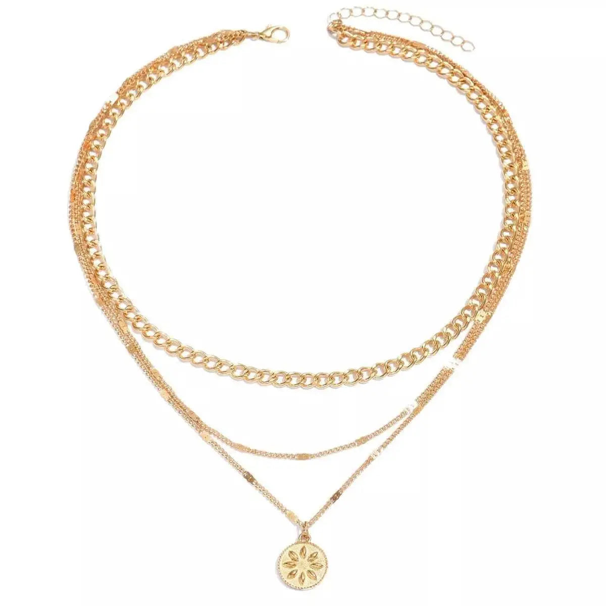 18K Gold-Plated Three Layered Pendant Necklace
