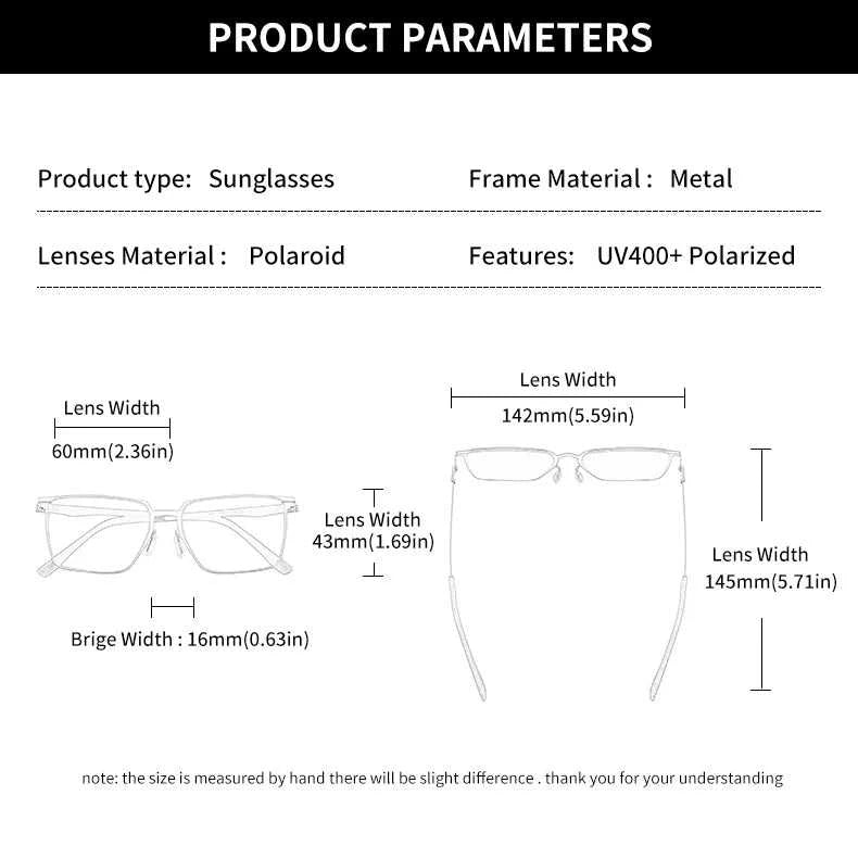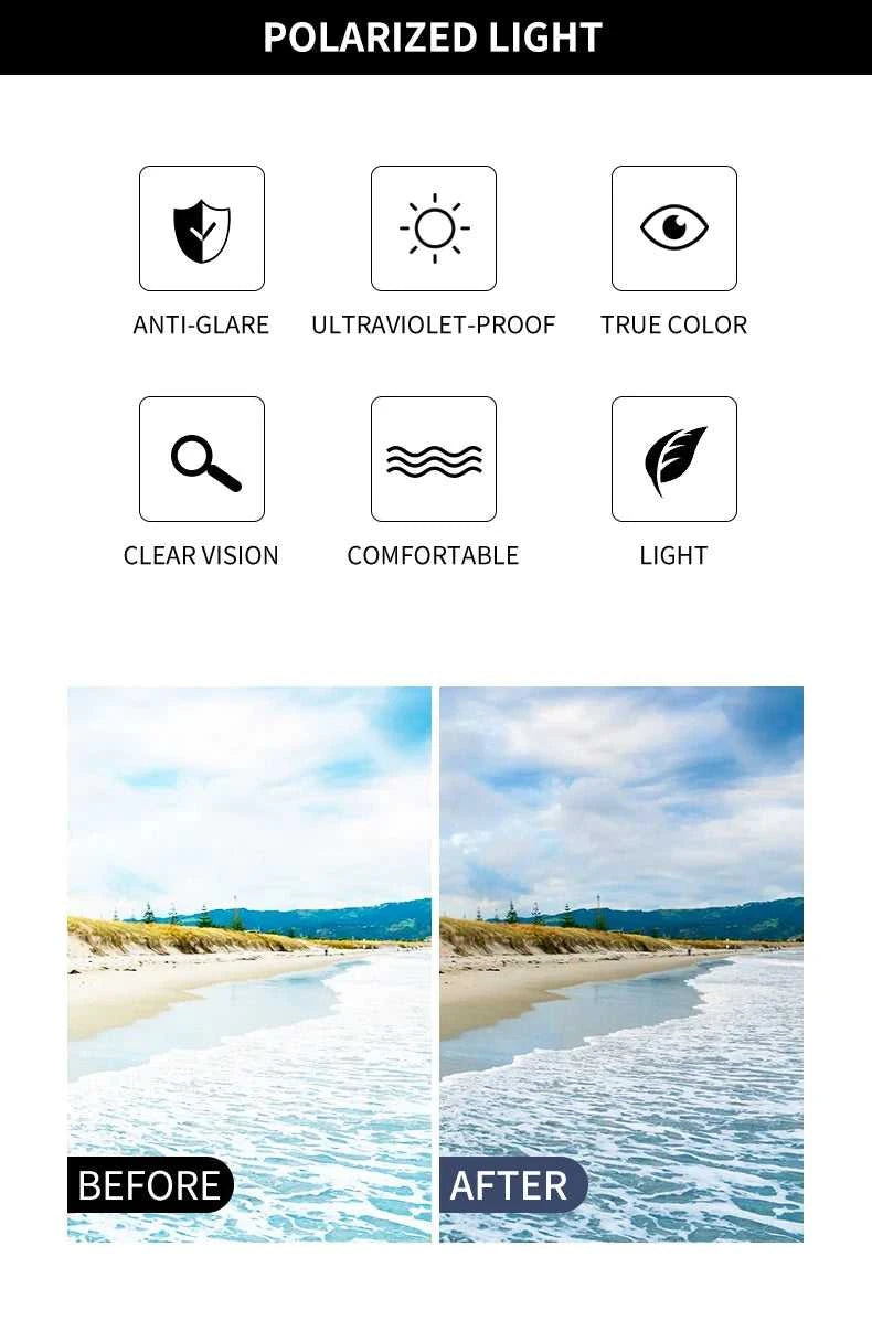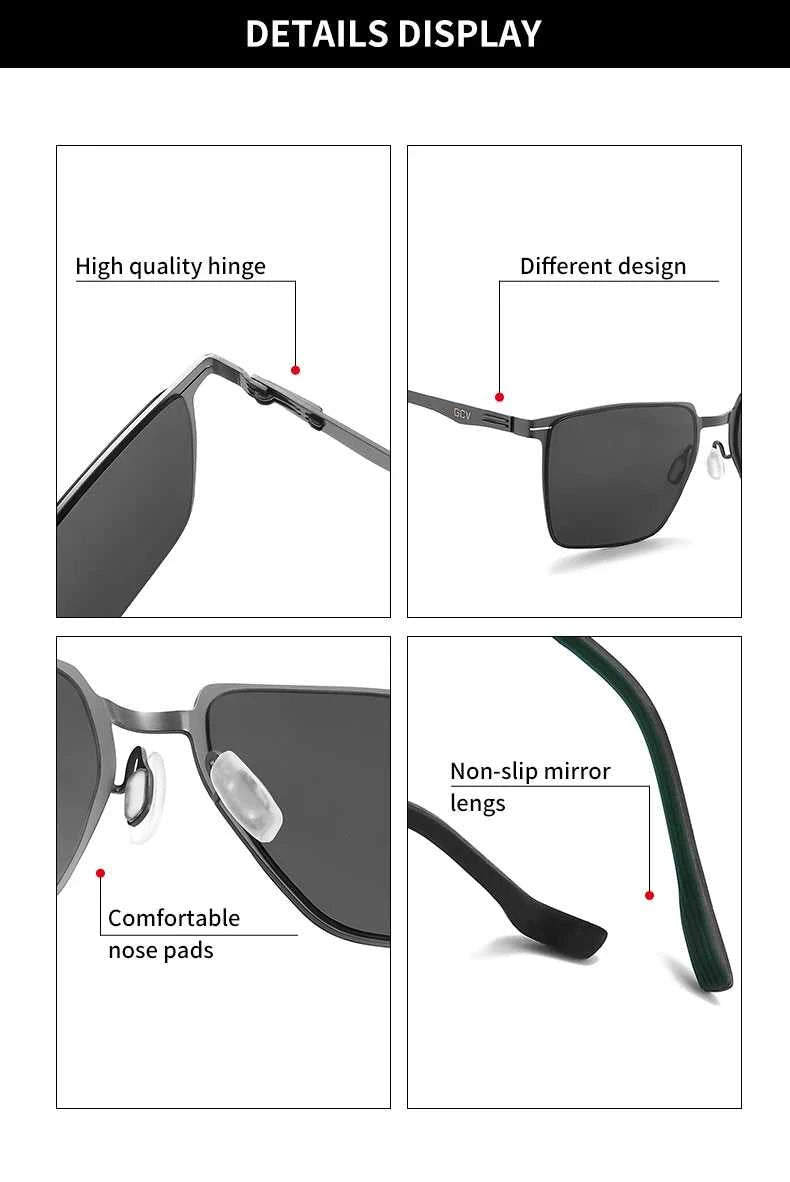 Engineered for the modern man, these GCV polarized sunglasses combine premium aluminum-magnesium construction with advanced lens technology. The rectangular frame delivers a sophisticated silhouette perfect for business and everyday wear. UV400 protection shields your eyes from harmful rays, while polarized lenses eliminate glare for crystal-clear vision during driving and outdoor activities. Anti-reflective coating enhances optical clarity, and the mirror finish adds contemporary style. Built to perform and designed to impress.