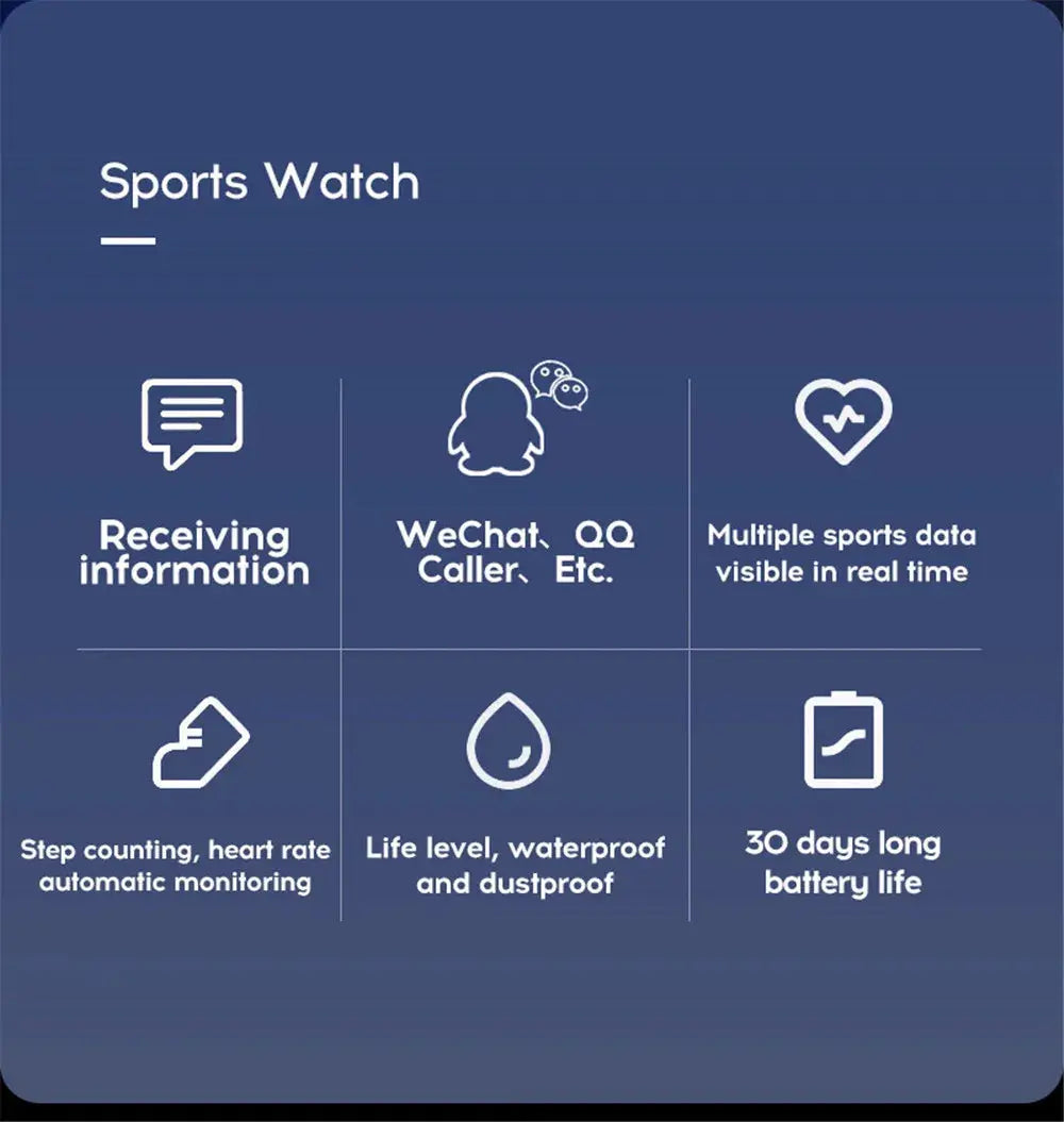 Track your wellness journey with this versatile Bluetooth smartwatch designed for both men and women. Monitor heart rate, blood pressure, blood oxygen, and sleep patterns in real time with its vibrant 1.44-inch display. Stay connected with call and message reminders, while fitness tracking features log your steps, calories, and distance across multiple sport modes. The waterproof design handles daily life, and the detachable silicone band ensures comfort during workouts. Compatible with Android and iOS devices via Bluetooth 4.0, this watch keeps you informed and motivated—all with impressive battery efficiency.