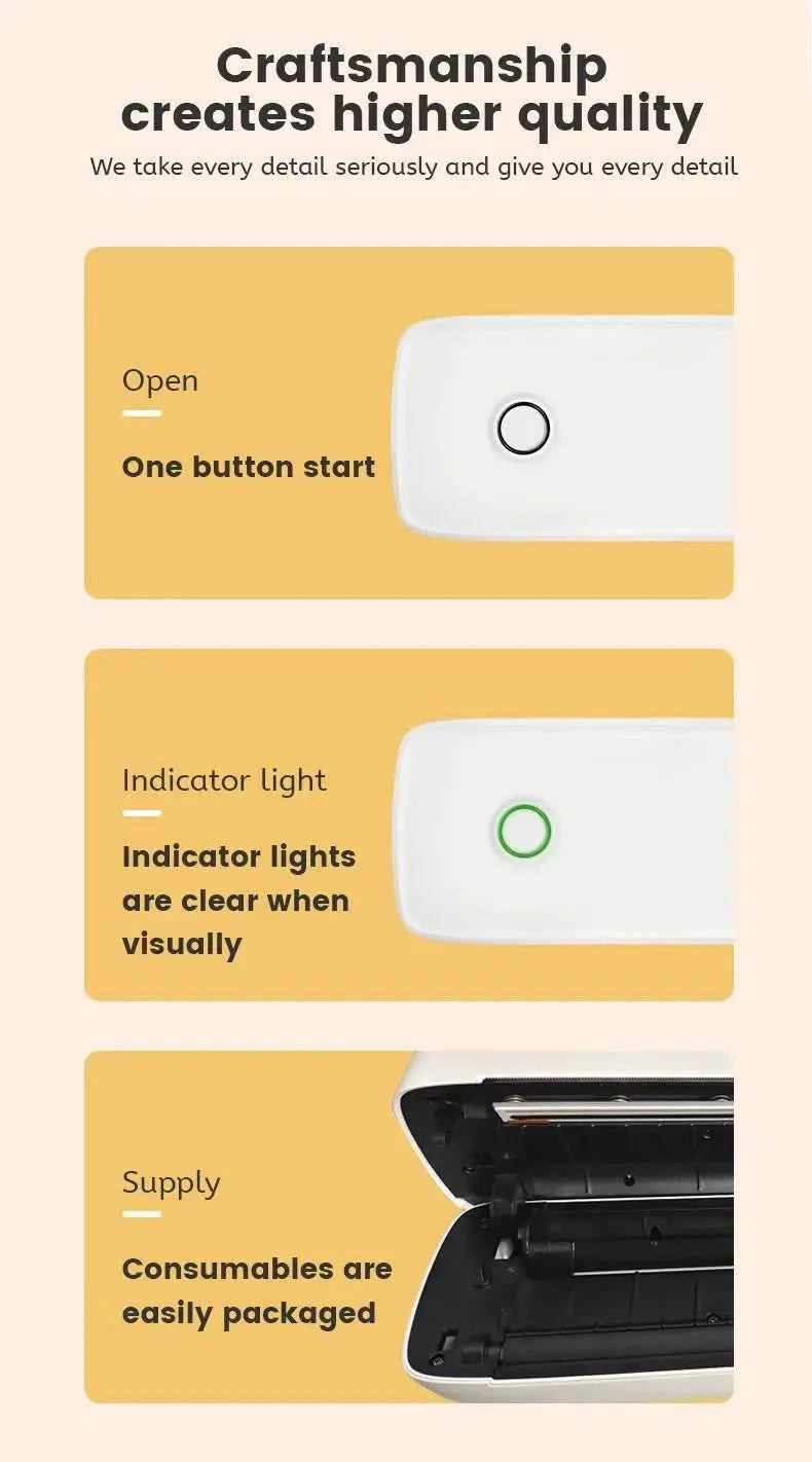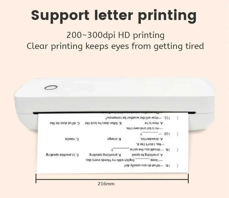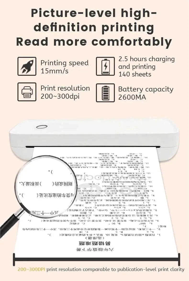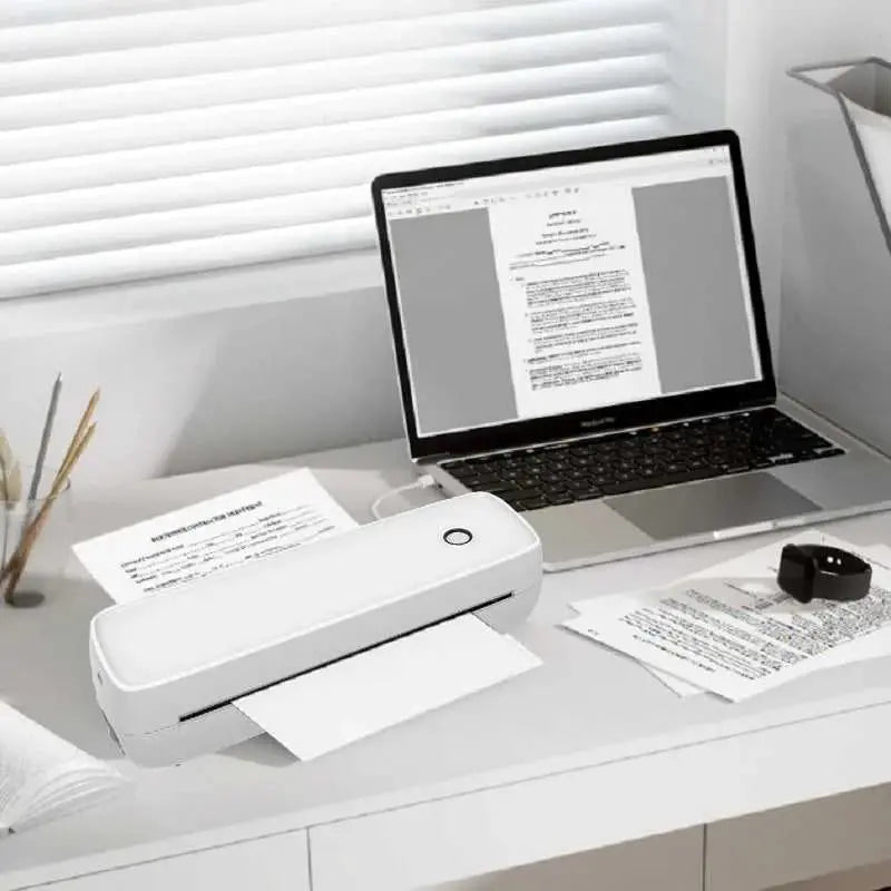 The Xprinter A80 is a compact thermal printer designed for professionals and students on the move. This portable A4 printer connects via Bluetooth to Android, iOS, Windows, and Mac devices, making it perfect for printing documents, contracts, photos, and study materials anywhere. The built-in 2600mAh rechargeable battery delivers up to 3 hours of continuous printing and 90 days of standby time, while the durable thermal print head supports over 50km of printing life. With adjustable paper clips accommodating multiple sizes (A4, 4", 3", 2"), this eco-friendly printer requires no ink cartridges. Weighing just 750g and measuring 265x80x45mm, it's your ideal travel companion for business trips and campus life. Includes thermal paper roll and USB cable.