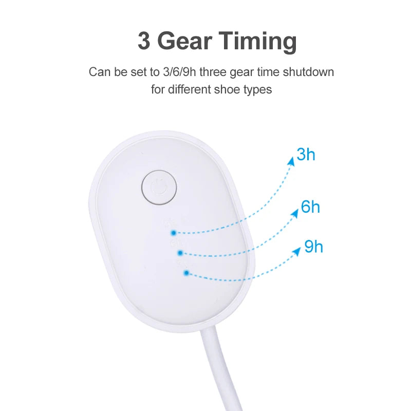 Preserve your footwear with this compact electric shoe dryer featuring PTC heating technology that maintains a consistent 70°C for gentle, uniform drying. The porous design accommodates various shoe types while the flame-retardant ABS shell ensures safety. Equipped with adjustable three-stage timing (3, 6, or 9 hours), it effectively removes moisture and odors. Compact at 170mm × 71mm × 29mm, this 20W dryer operates on 220V power, making it an essential addition to any household.