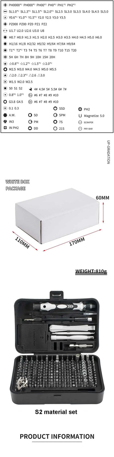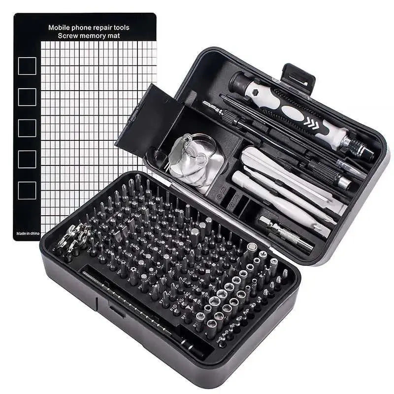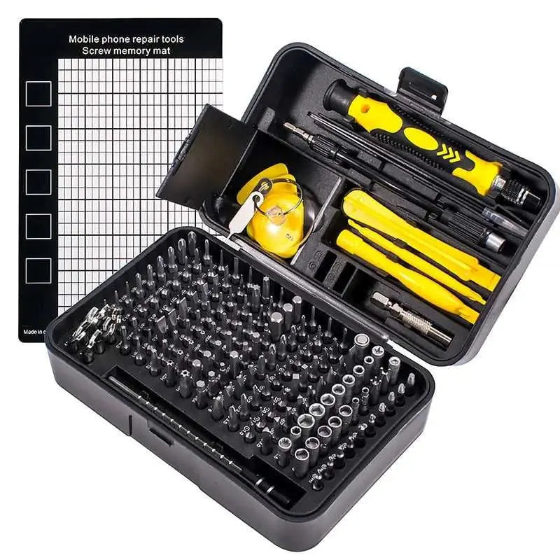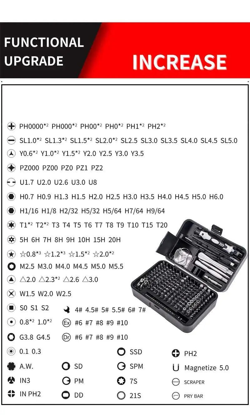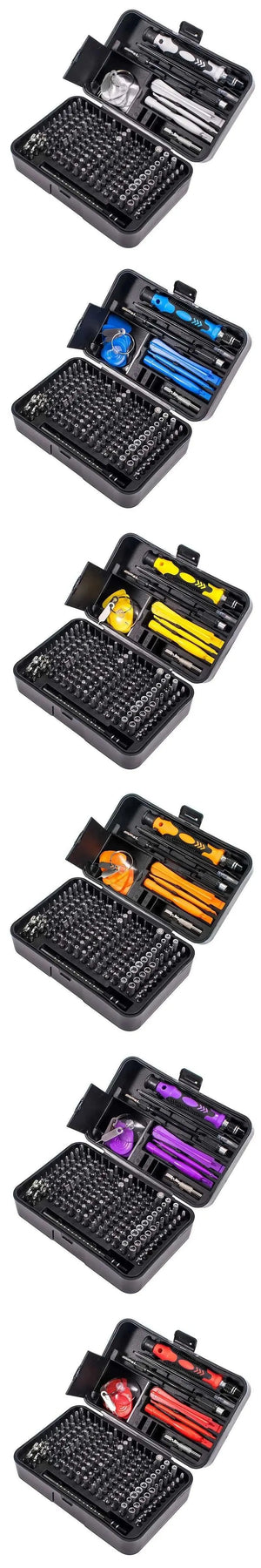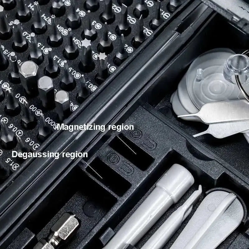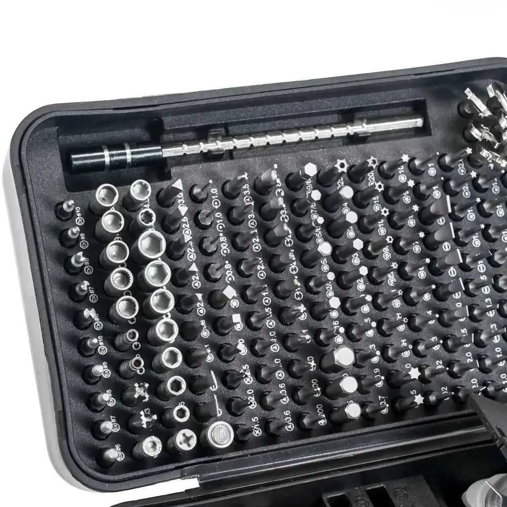 170-piece magnetic screwdriver bit set with organized tool box storage. Features durable metal construction and includes various bit types for metalworking and DIY projects. Compact design makes it ideal for home repairs, electronics work, and professional use. Magnetic bits keep fasteners secure during application. Complete set arrives ready to use.