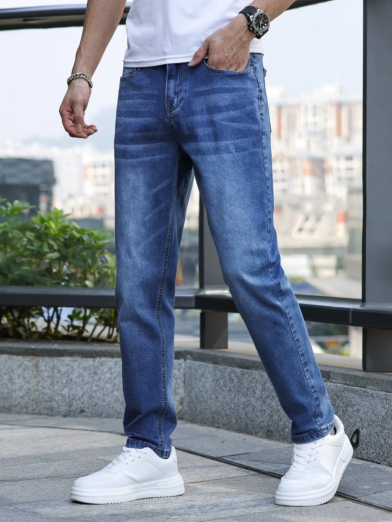 The Men’s Denim Trousers by Daily Goods are versatile slim fit horn leg jeans designed for daily wear. Crafted from high-quality denim, these trousers offer a comfortable fit and stylish look. Available in classic colors such as Black, Blue, and Light Blue, and a range of sizes from S to XXL, these trousers cater to different preferences. The unique selling points of these trousers include their slim fit design, horn leg style, and durability. Perfect for casual outings or everyday wear, these Men’s Denim Trousers are a must-have in any man's wardrobe.