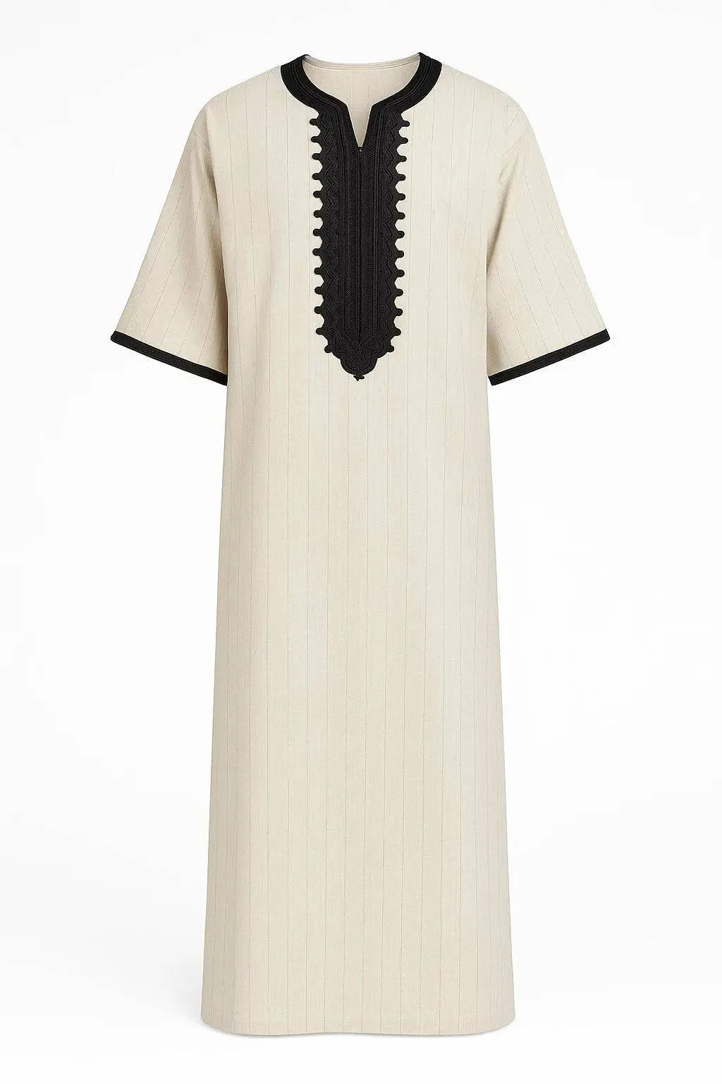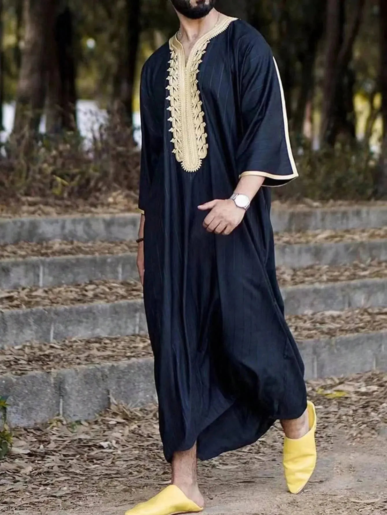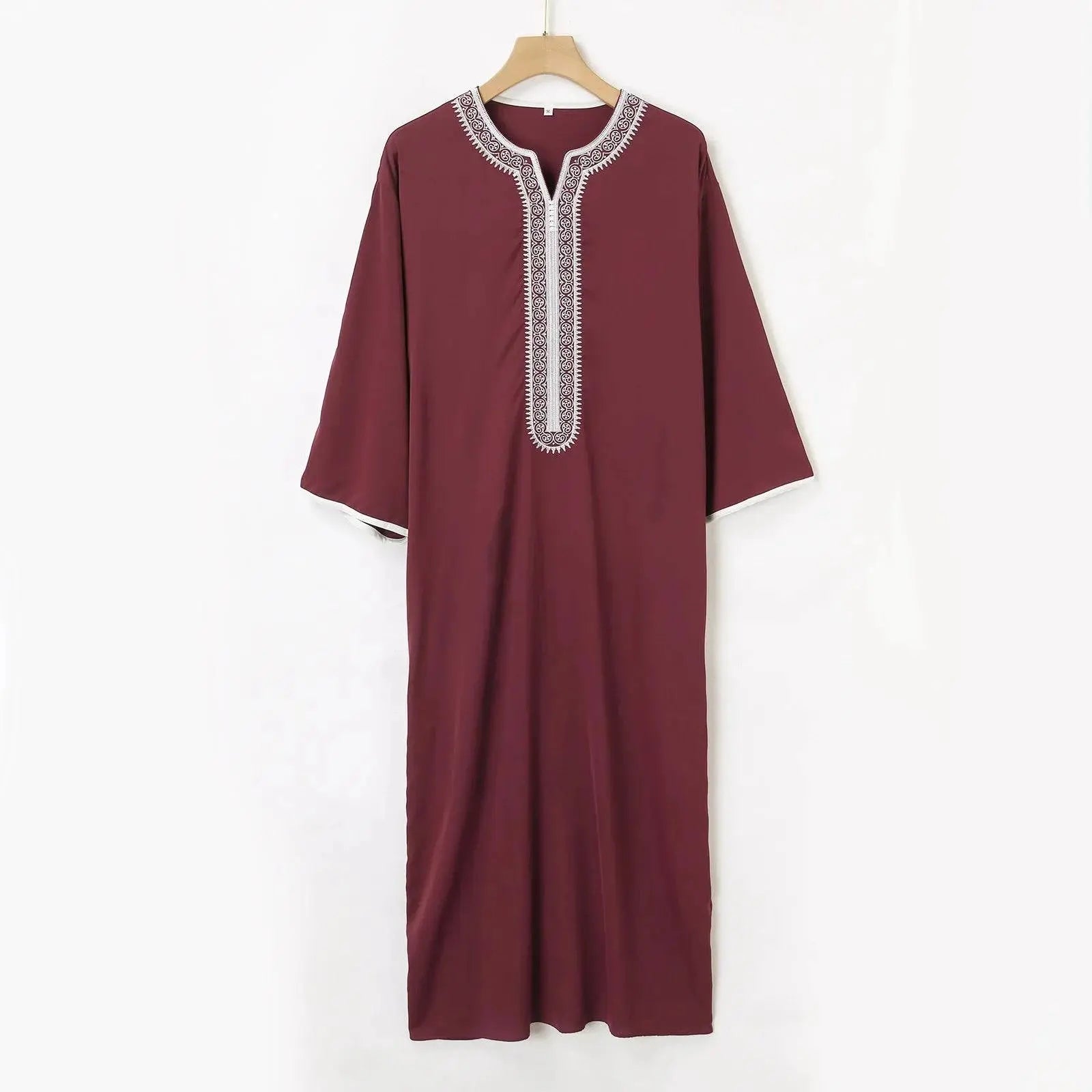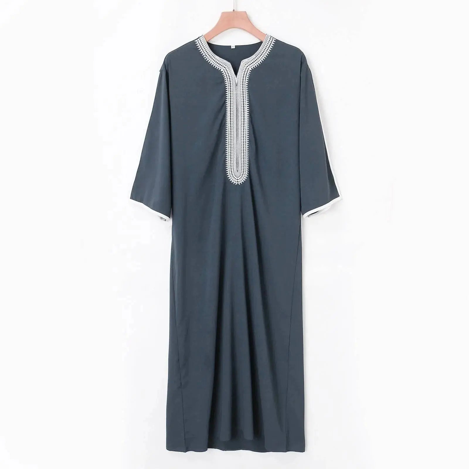 Moroccan Hand Embroidered Men's Kaftan Experience timeless elegance with this hand-embroidered Moroccan kaftan, expertly crafted for comfort and style. The breathable fabric keeps you cool throughout the day, while the loose fit allows complete freedom of movement. Perfect for both religious occasions and casual wear, this sophisticated piece showcases authentic craftsmanship and traditional design. Ideal for the discerning man who values quality and cultural heritage.