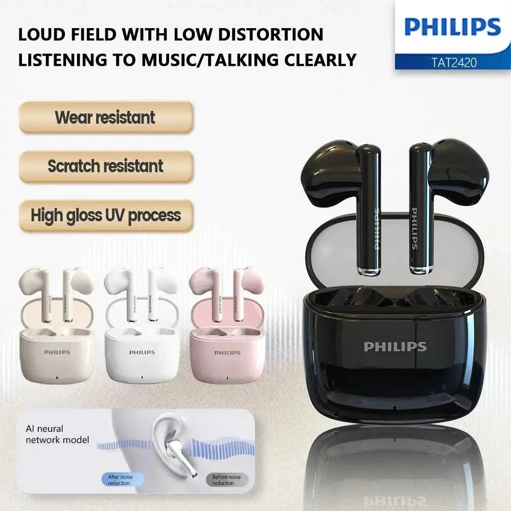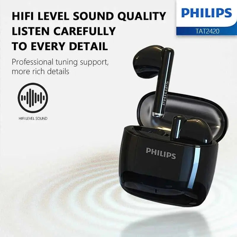 Experience premium audio with the Philips TAT2420 Mini, a compact wireless Bluetooth headphone designed for active lifestyles. Featuring advanced active noise cancellation and dynamic drivers delivering rich HiFi sound, these semi-in-ear earbuds adapt seamlessly from gaming sessions to outdoor adventures. The intelligent microphone filters background noise during calls, while intuitive volume controls keep you in command. With an impressive 20-hour battery life powered by the convenient charging case, you'll enjoy extended listening without interruption. Water-resistant construction and soft silica gel ear tips ensure comfort and durability through workouts and daily wear. Simply charge via USB Type-C and connect instantly via Bluetooth for hassle-free wireless freedom.
